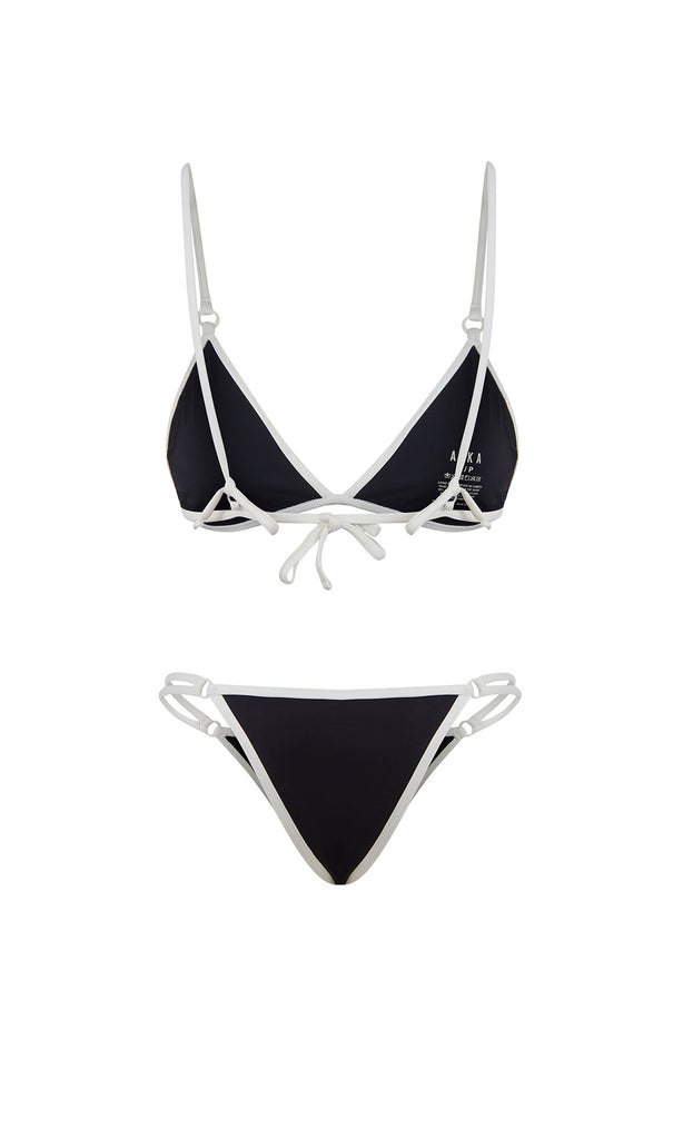 Apresentamos o exclusivo top Korah, criado em 2015 para ser o destaque da marca Aika. Este top de triângulo possui ajustes de amarração nas costas e nos ombros, proporcionando um ajuste perfeito. Com bojo removível e impermeável, oferece conforto e praticidade. O tecido biodegradável e a modelagem impecável são características que tornam este top ainda mais especial. As argolas com pintura automotiva sempre combinam com as cores de viés da marca, tornando-o uma peça exclusiva da Aika combinando com o bottom Korah, que possui um design único com contornos larguinhos em todas as bordas, tiras duplas nas laterais e cobertura média no bumbum. É perfeito para aquelas que gostam de um pouco mais de cobertura e designs exclusivos.